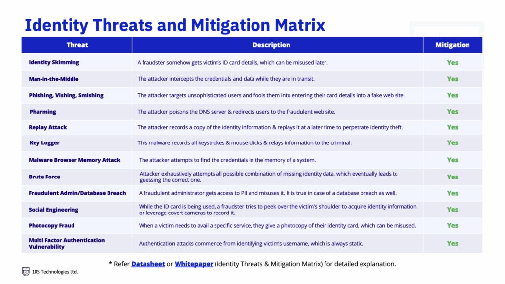 This approach provides the broadest protection against all known identity threats known to exist such as, card skimming, Phishing, MITM, Fraudulent Admin/Database breach, Multi Factor Authentication Vulnerability etc.